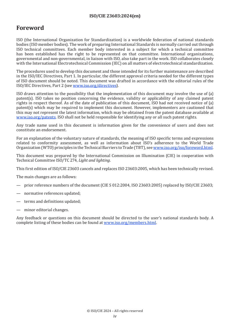 ISO/CIE 23603:2024 has the following relationships with other standards: It is inter standard links to ISO 23603:2005. Understanding these relationships helps ensure you are using the most current and applicable version of the standard.