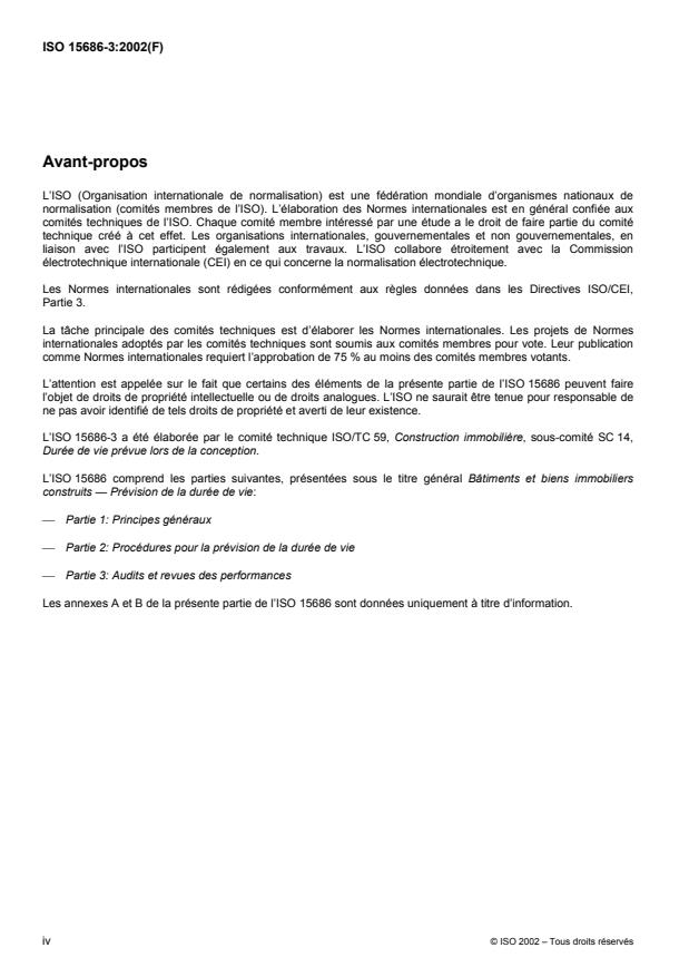 ISO 15686-3:2002 - Bâtiments et biens immobiliers construits -- Prévision de la durée de vie