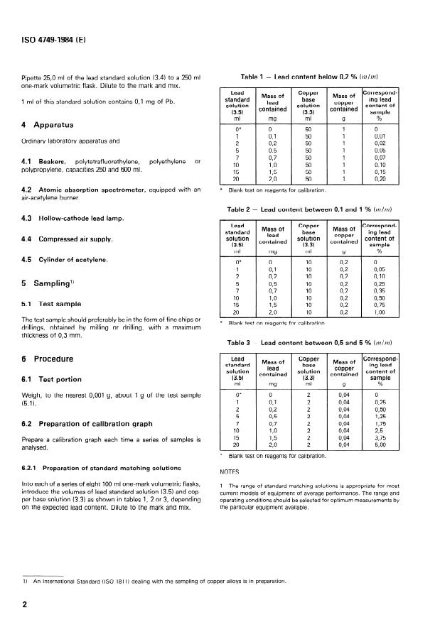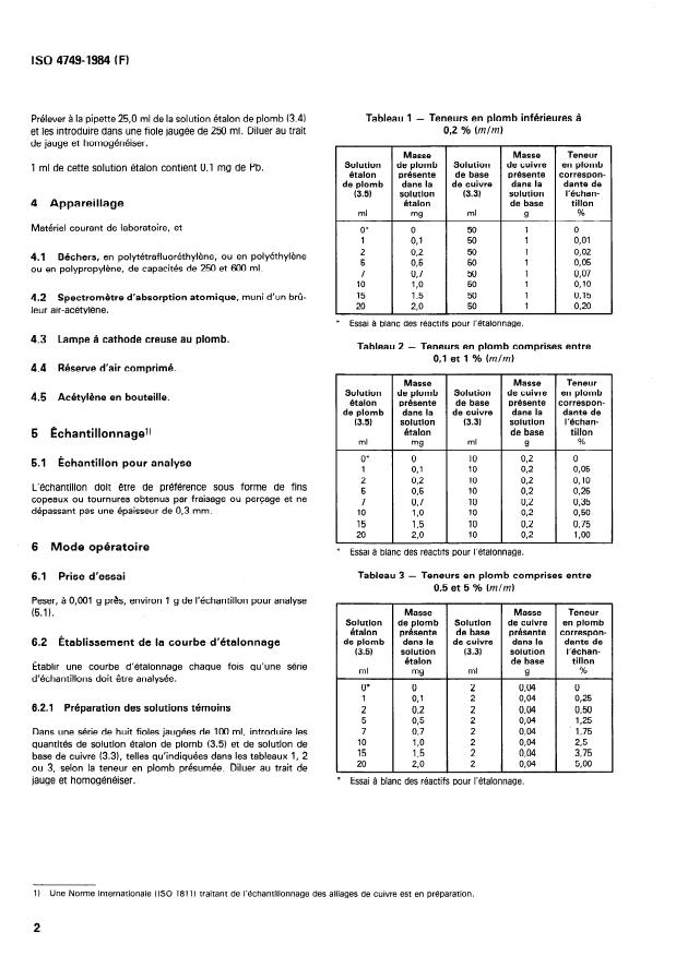 ISO 4749:1984 - Copper alloys -- Determination of lead content -- Flame atomic absorption spectrometric method