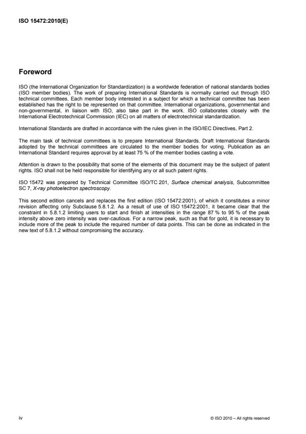 • ISO 18115-1 (vocabulary for surface chemical analysis) is normative for terminology used in ISO 15472.