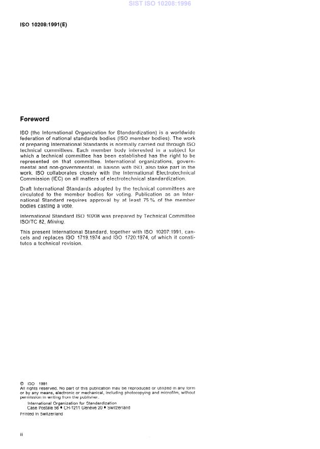 제목: ISO 10208:1991 - 암석 드릴링 장비 - 좌류로프 타입 내용: 충격드릴링에 사용되는 로프 타입 드릴 스틸 장비에 사용되는 좌류로프 스레드의 치수와 허용 오차를 정의합니다. 다섯 가지 값 세트가 제시됩니다.