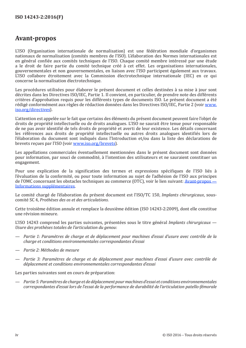 Cette troisième édition annule et remplace la deuxième édition (ISO 14243-2:2009), dont elle constitue