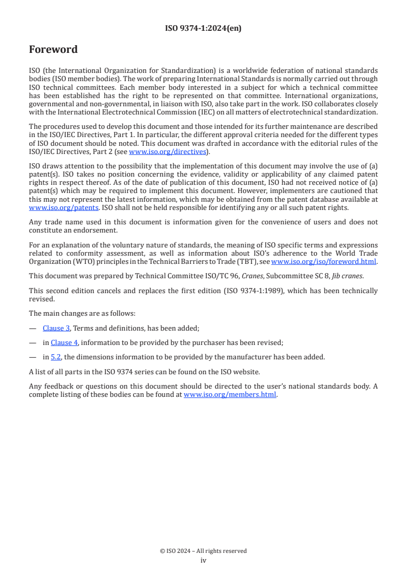 - Standards Referenced: The document refers to key related standards such as ISO 4306-1 (Cranes Vocabulary) and ISO 7363 (Technical characteristics and acceptance documents), integrating terminology and technical requirements for clarity and consistency.