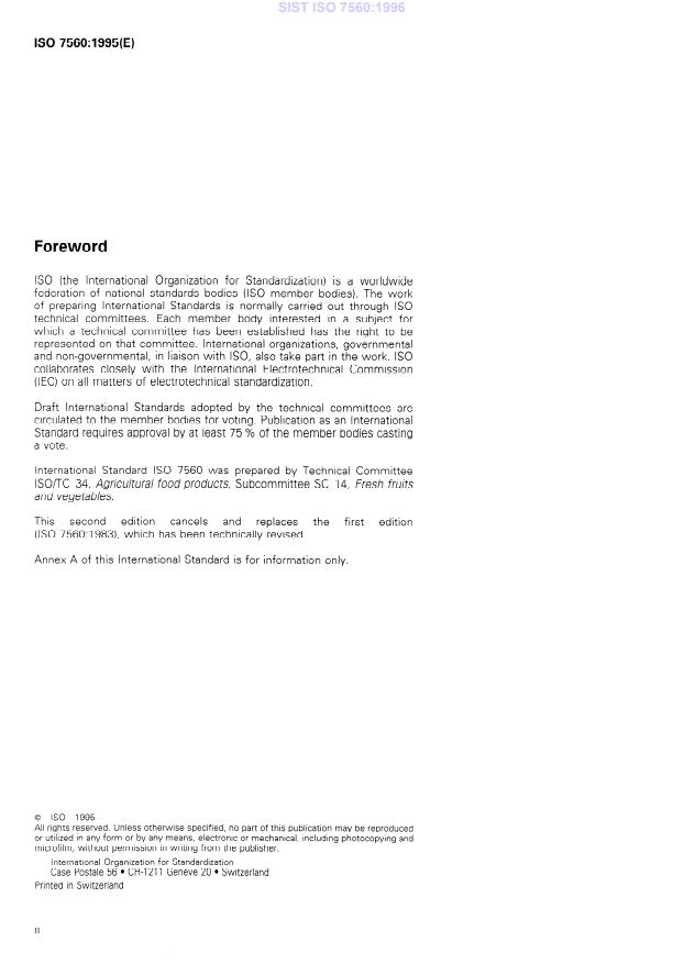 lSO/TC 34, Agrkulturai food products, Subcommittee SC 14, Fresh fruits