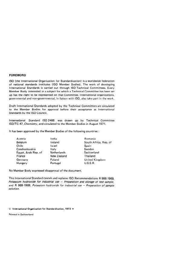 ISO 2466:1973 replaces earlier ISO Recommendations R 988-1969 and R 989-1969 and is applicable worldwide, providing a uniform approach to ensure reliable testing results and consistent quality control in industries using potassium hydroxide.