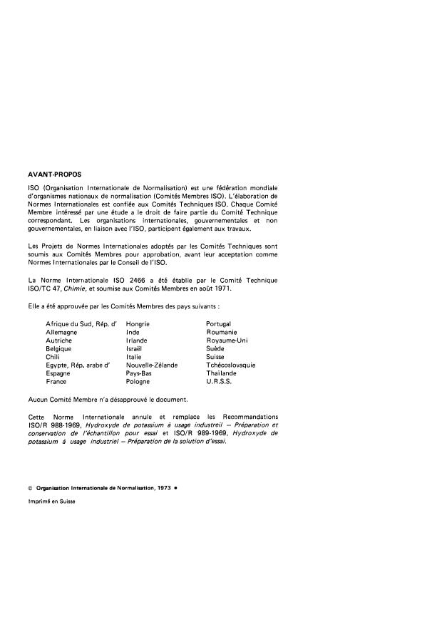 ISO/R 988-1969, Hydroxyde de potassium à usage industreil - Preparation et