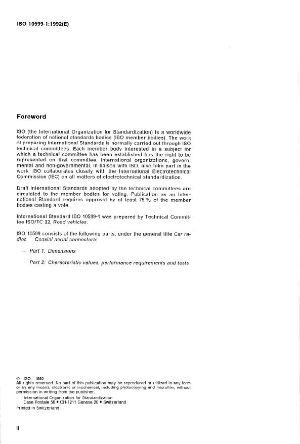 ISO 10599-1:1992 - Car radios -- Coaxial aerial connectors
