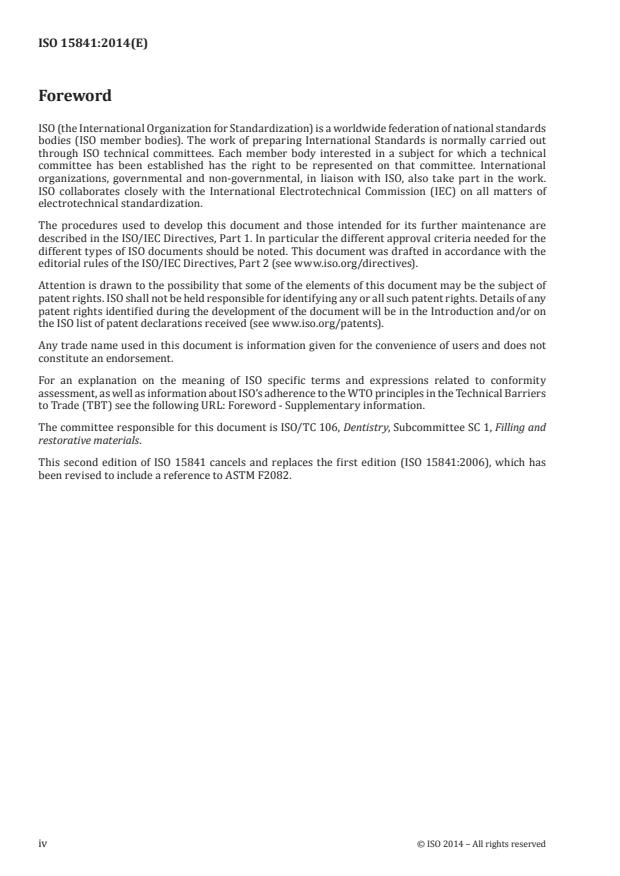 ISO 15841:2014 specifies requirements and test methods for wires to be used in fixed and removable orthodontic appliances. It includes preformed orthodontic archwires but excludes springs and other preformed components. ISO 15841:2014 gives detailed requirements concerning the presentation of the physical and mechanical properties of orthodontic wires, the test methods by which they can be determined, and packaging and labelling information.