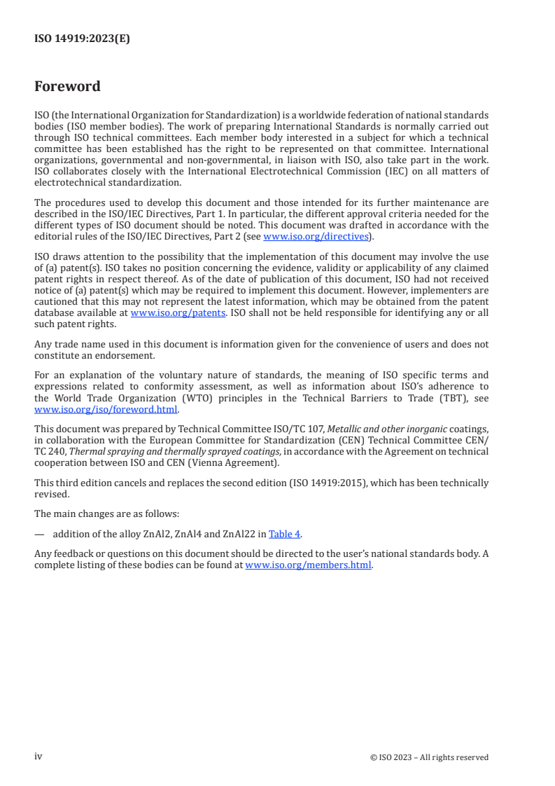ISO 14919:2023 - Thermal spraying — Wires, rods and cords for flame and arc spraying — Classification and technical supply conditions Released:31. 10. 2023