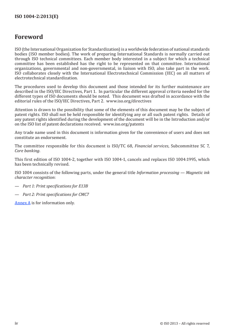 Keywords: ISO 1004-2:2013, CMC7, MICR, magnetic ink character recognition, print specifications, signal level, cheque processing, character tolerances.