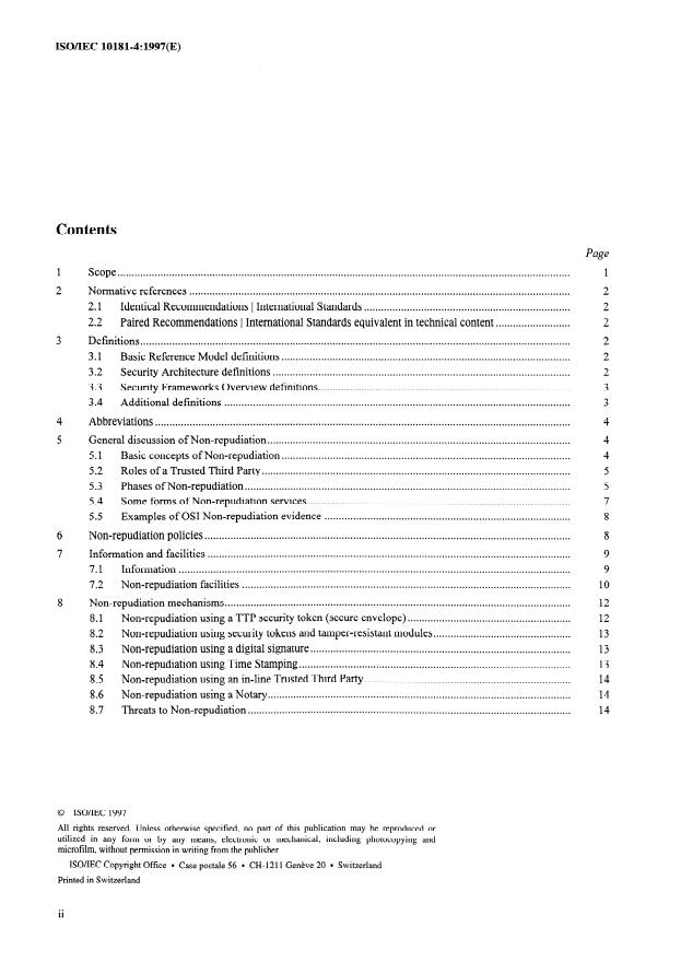 Keywords: ISO/IEC 10181-4, non-repudiation framework, Open Systems Interconnection, digital signature, trusted third party, time stamping, security services, proof of origin, proof of delivery, PKI.