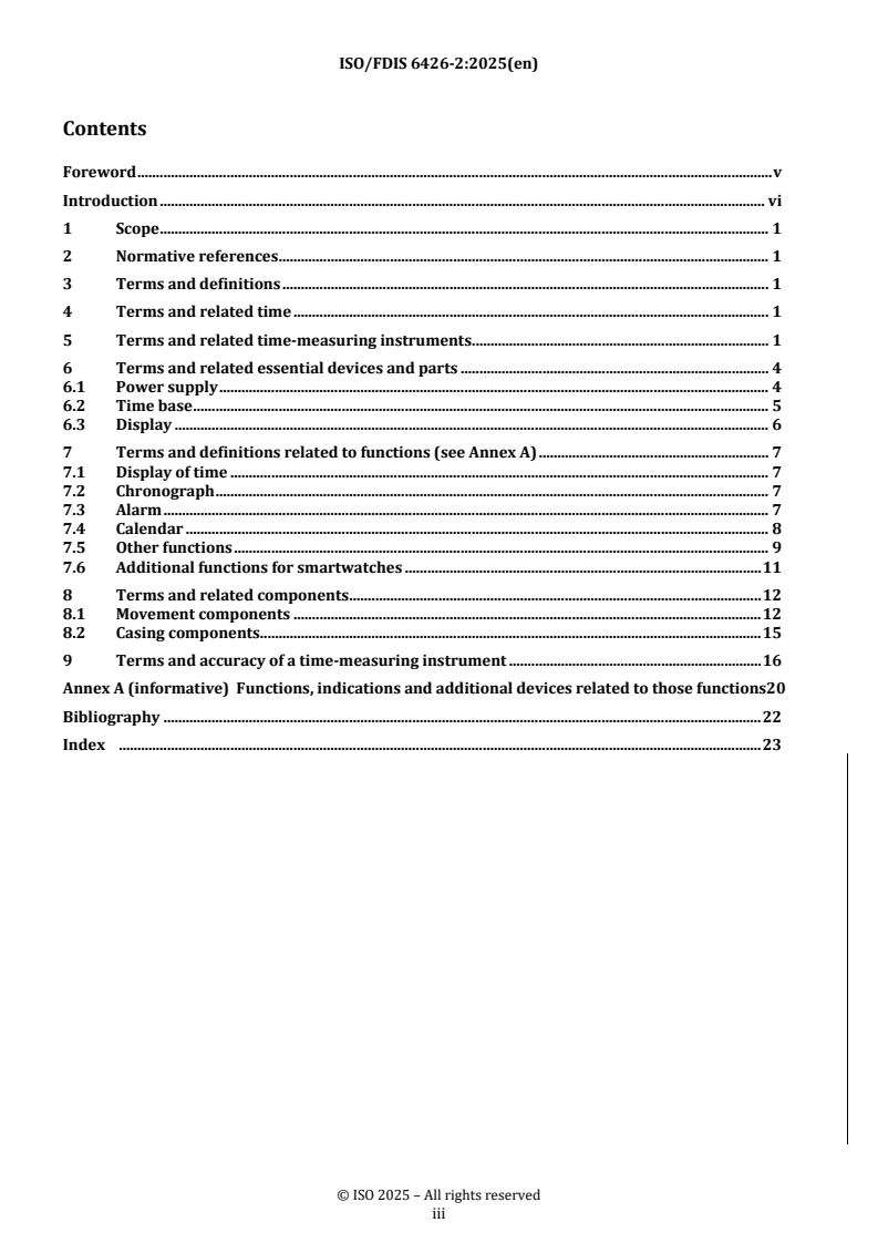 ISO/FDIS 6426-2 is a draft published by the International Organization for Standardization (ISO). Its full title is "Horological vocabulary - Part 2: Technical and commercial definitions". This standard covers: ISO 6426-2:2002 defines the principal technical and commercial terms used in the horological industry. The terms and definitions apply to time-measuring instruments and related devices.