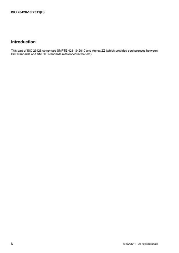 This part of ISO 26428 comprises SMPTE 428-19-2010 and Annex ZZ (which provides equivalences between
