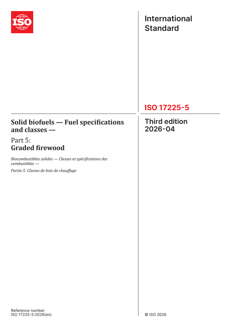 ISO 17225-5:2026 - Solid biofuels — Fuel specifications and classes — Part 5: Graded firewood