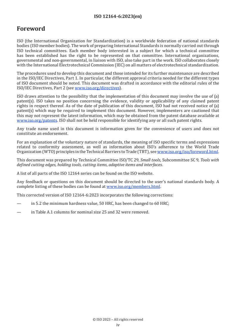 ISO 12164-6:2023 - Hollow taper interface with flange contact surface — Part 6: Receivers of types AS, CS and ES for hollow taper shanks of types AS, CS and ES Released:20. 10. 2023