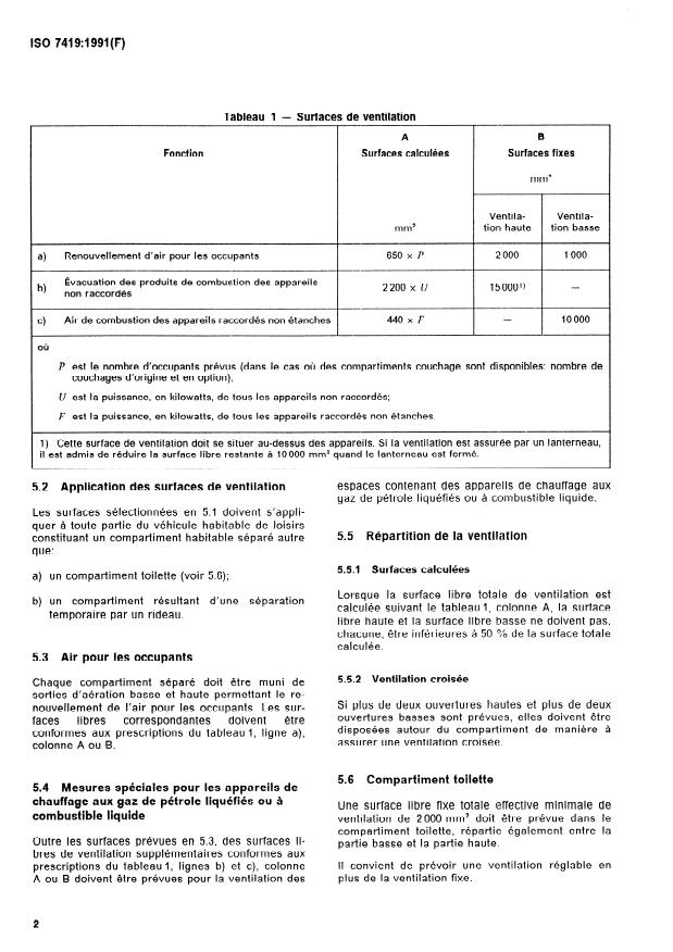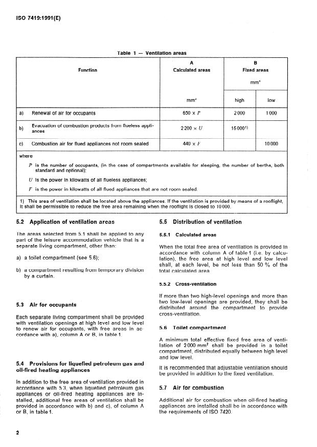 ISO 7419:1991 is a standard published by the International Organization for Standardization (ISO). Its full title is "Leisure accommodation vehicles — Ventilation requirements". This standard covers: Provides a test method, and specifies fixed free areas, or a calculation method for them, to provide sufficient ventilation. This second edition cancels and replaces the first edition (1984).