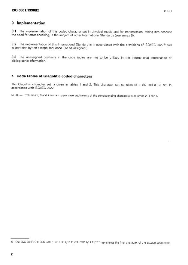 - Implementation notes: Use follows ISO/IEC 2022 extension techniques and escape sequence identification; unassigned positions in the tables are not to be used for international interchange. Rendering examples are illustrative - intended to uniquely identify characters rather than prescribe calligraphic style.