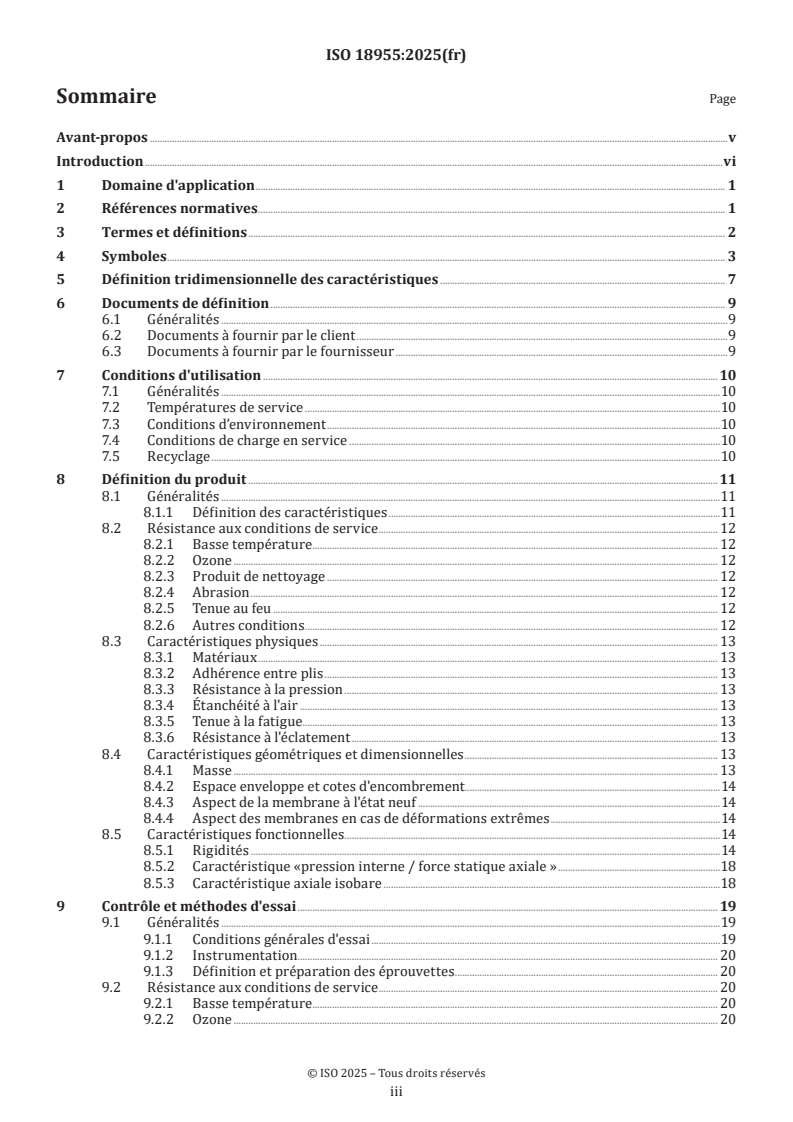ISO 18955:2025 defines the characteristics, inspection and test methods for rubber diaphragms used in pneumatic suspension springs for railway applications. It applies to diaphragms (inflated with air) fitted on railway and similar vehicles running on dedicated track systems. The standard covers diaphragm construction (elastomer, textile fabrics, metallic beads), functional and geometrical characteristics, environmental and operating conditions, and procedures for product approval and qualification. It does not cover other air-spring system components (air reservoirs, piping, levelling systems, frames, emergency or series springs), which can nevertheless influence diaphragm performance.