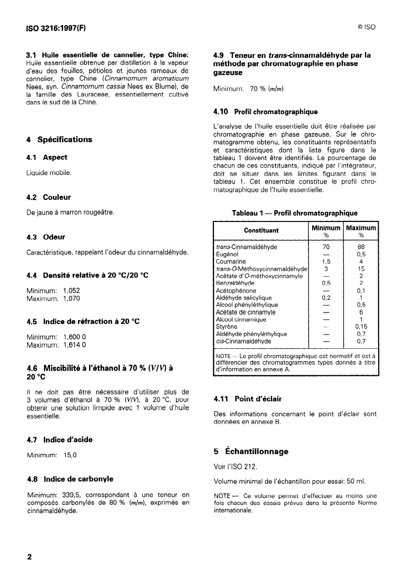 moment donné. ISO 11025:- 3) Huile essentielle de cannelier, type