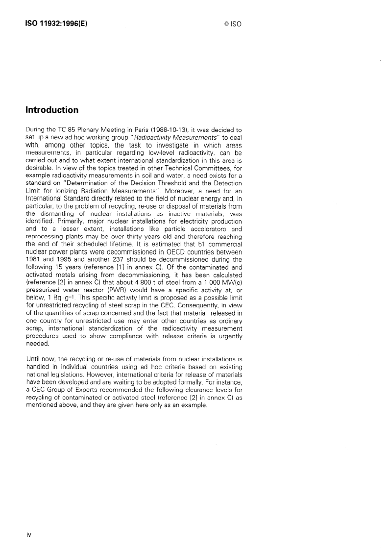 ISO 11932:1996 - Activity measurements of solid materials considered for recycling, re-use or disposal as non-radioactive waste Released:12/26/1996