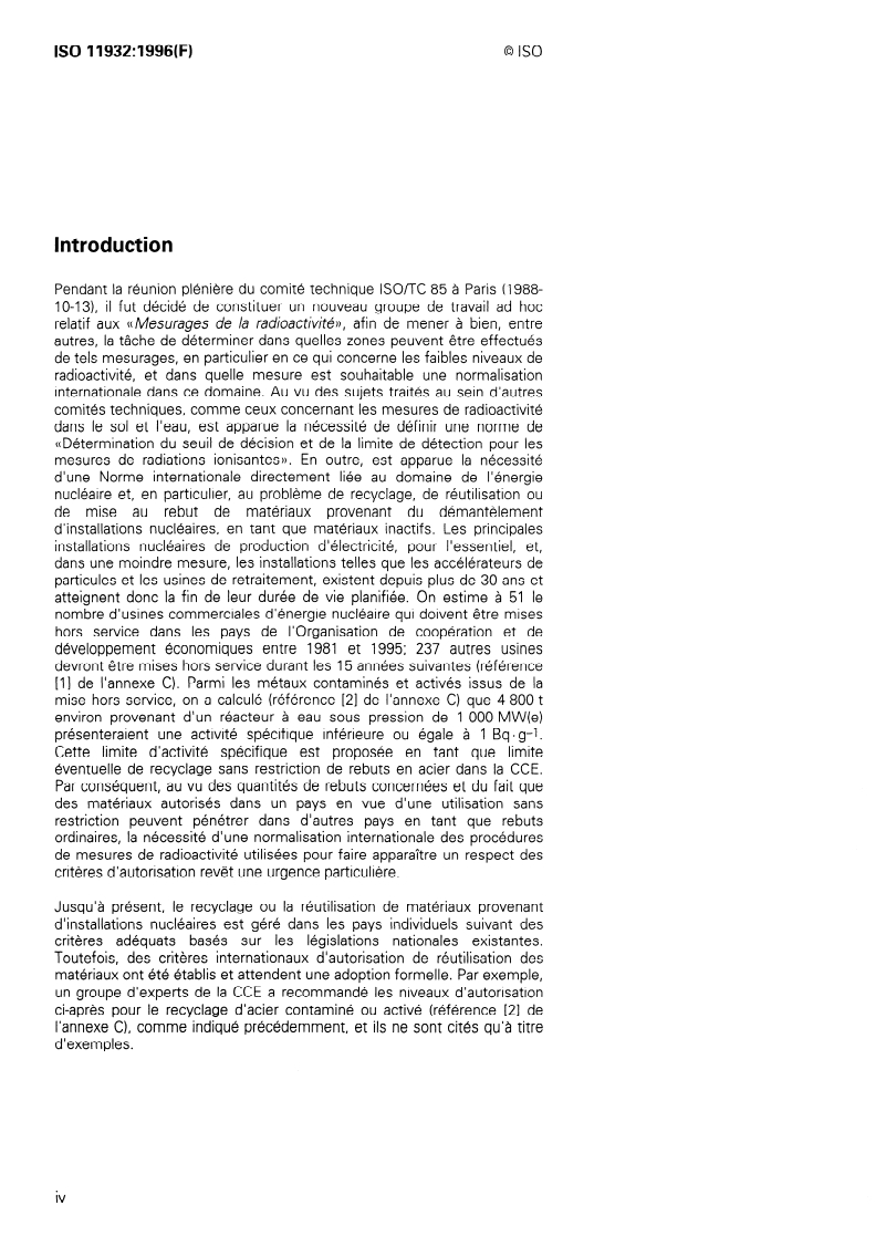 ISO 11932:1996 is a standard published by the International Organization for Standardization (ISO). Its full title is "Activity measurements of solid materials considered for recycling, re-use or disposal as non-radioactive waste". This standard covers: Guidance and methods for activity measurements of materials to be released for recycling, re-use or disposal as non-radioactive waste arising from the operation of nuclear facilities.