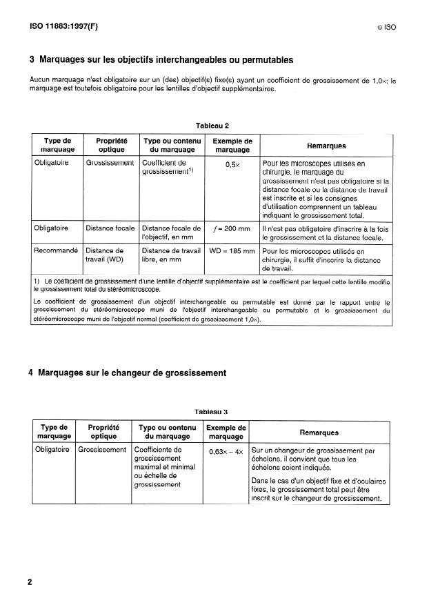 ISO 11883:1997 - Optique et instruments d'optique -- Microscopes -- Marquage des stéréomicroscopes