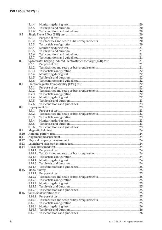 ISO 19683:2017은 소형 우주선 또는 부품의 설계 인증과 수용 시험의 테스트 방법과 요구 사항을 제공하는 표준입니다. 이 표준은 상업용 소형 우주선과 그 부품의 설계 및 제조 방법을 인증하고 최종 제품을 수용하기 위한 최소한의 테스트 요구 사항과 테스트 방법을 제공합니다. ISO 19683:2017은 위성 발사 후의 신생 아동률을 줄이면서도 저렴한 비용과 빠른 납기를 유지하기 위해 강조하고 있습니다. ISO 19683:2017은 위험 허용 여지가 적은 전통적인 위성과는 다른 개발 방법을 사용하는 위성에 적용됩니다. 본 문서의 범위는 미니, 마이크로, 나노, 피코, 펨토 및 CubeSat과 같은 다양한 소형 우주선 범주를 포함하고 있습니다. 따라서 편의상 "소형 우주선"이라는 용어를 본 문서 전체에서 일반 용어로 사용합니다. ISO 19683:2017은 비전통적인 절차로 개발된 경우 CubeSat을 포함합니다.