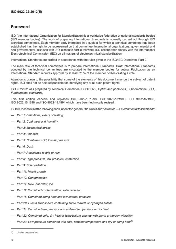 ISO 9022 consists of the following parts, under the general title Optics and photonics — Environmental test methods: