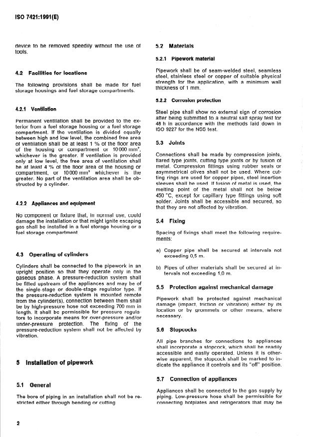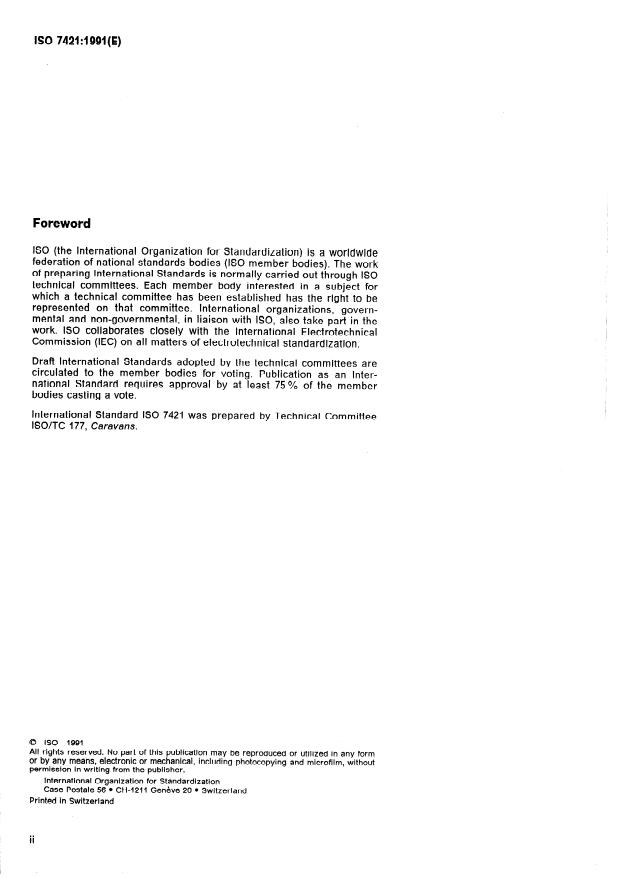 ISO 7421:1991 is a standard published by the International Organization for Standardization (ISO). Its full title is "Leisure accommodation vehicles — Liquefied petroleum gas systems". This standard covers: Leisure accommodation vehicles — Liquefied petroleum gas systems