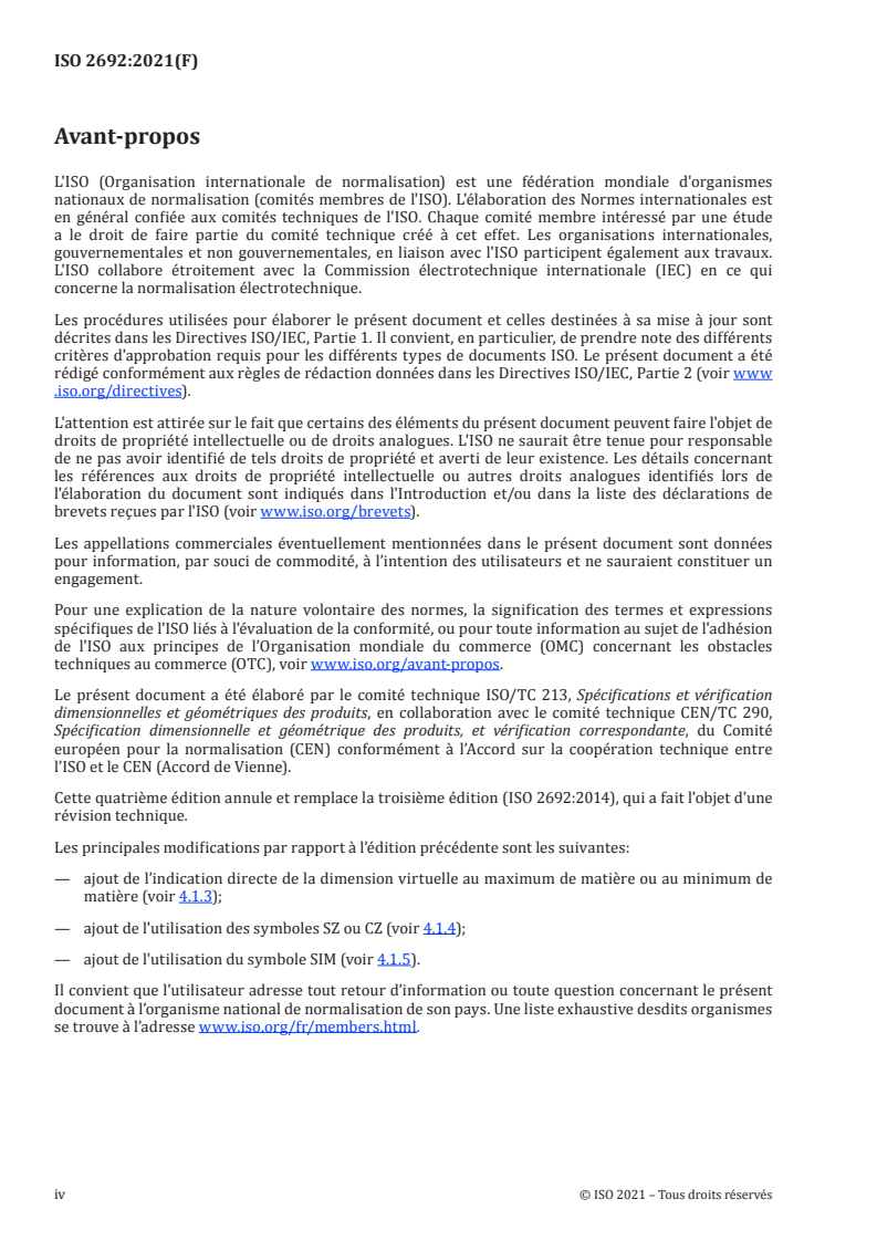 ISO 2692:2021 - Spécification géométrique des produits (GPS) — Tolérancement géométrique — Exigence du maximum de matière (MMR), exigence du minimum de matière (LMR) et exigence de réciprocité (RPR) Released:6/10/2021
