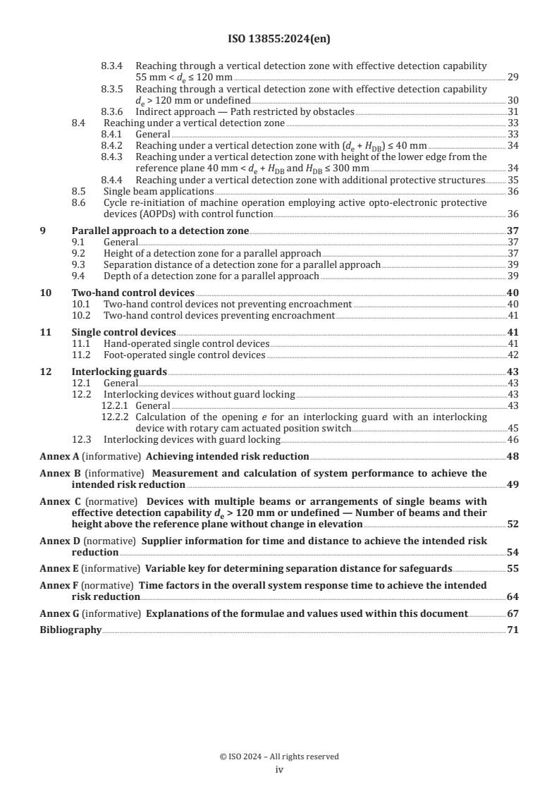 - Methodology & system performance: Guidance on methodology, calculation of dynamic separation distances, and normative/ informative annexes on measurement, supplier information, time factors and explanations.