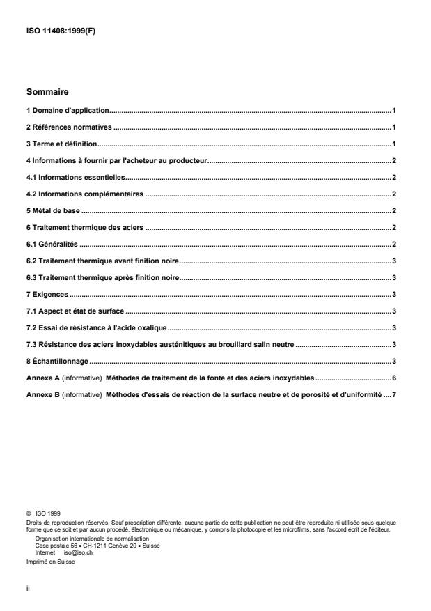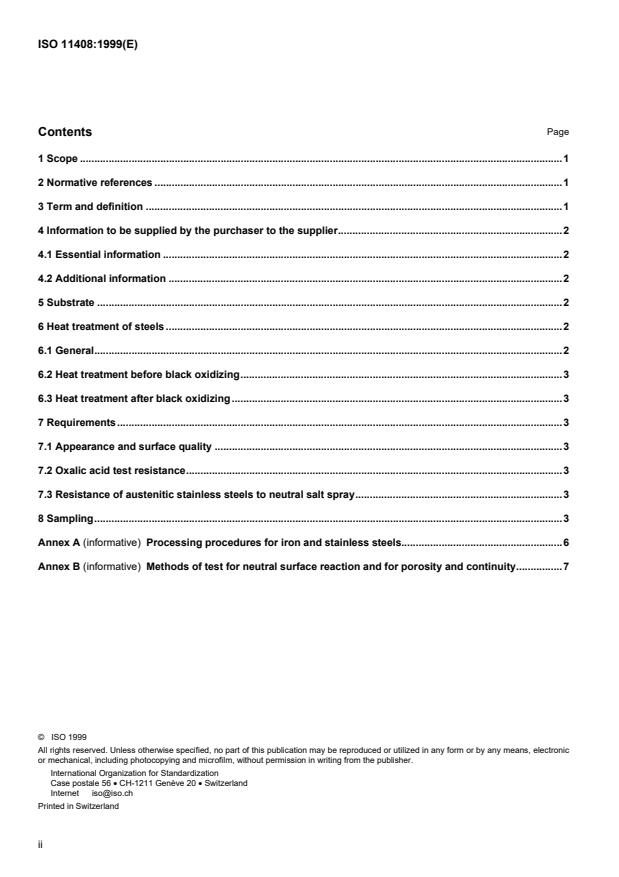 Keywords: ISO 11408, black oxide coating, chemical conversion coatings, iron and steel, oxalic acid test, neutral salt spray, porosity test, hydrogen embrittlement, sampling, surface quality.