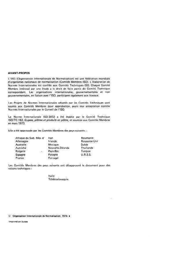 ISO/TC 152, Gypses, plâtres etproduits en plâtre, et soumise aux Comités Membres