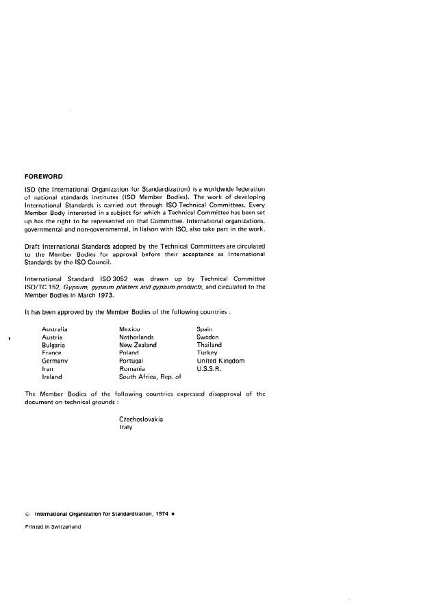 ISO 3052:1974 - Gypsum plasters -- Determination of water of crystallization content