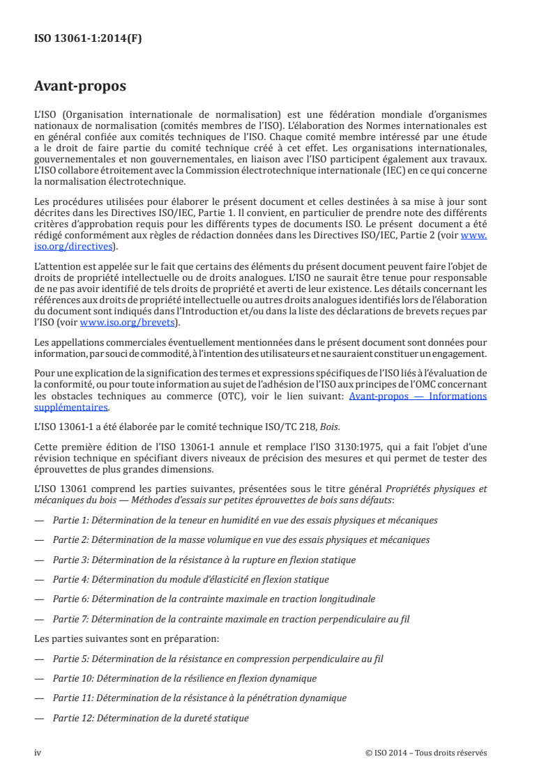 Cette première édition de l’ISO 13061-1 annule et remplace l’ISO 3130:1975, qui a fait l’objet d’une