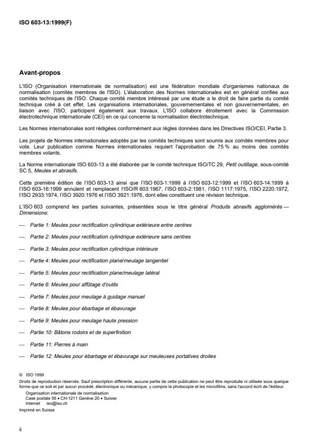 Cette première édition de l’ISO 603-13 ainsi que l’ISO 603-1:1999 à l’ISO 603-12:1999 et l’ISO 603-14:1999 à