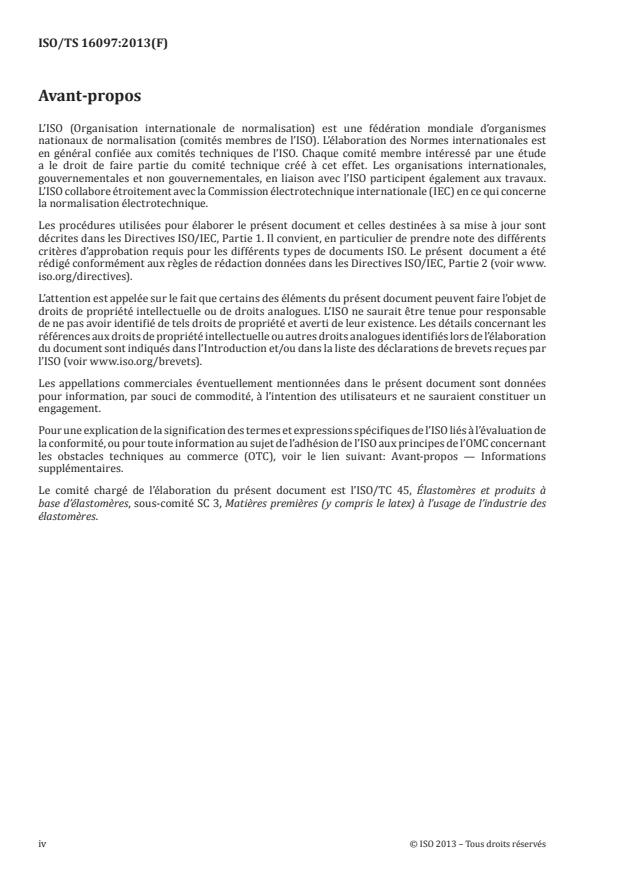 ISO/TS 16097:2013 is classified under the following ICS (International Classification for Standards) categories: 83.040.10 - Latex and raw rubber. The ICS classification helps identify the subject area and facilitates finding related standards.