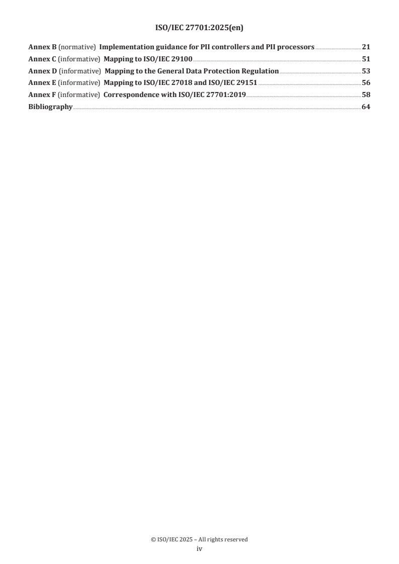- Annexes: normative control objectives and controls for PII controllers/processors (Annex A), implementation guidance (Annex B), and mappings to ISO/IEC 29100, GDPR, ISO/IEC 27018 and ISO/IEC 29151.