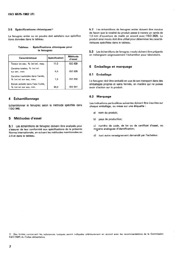 ISO 6575:1982 - Fenugrec, entier ou en poudre -- Spécifications