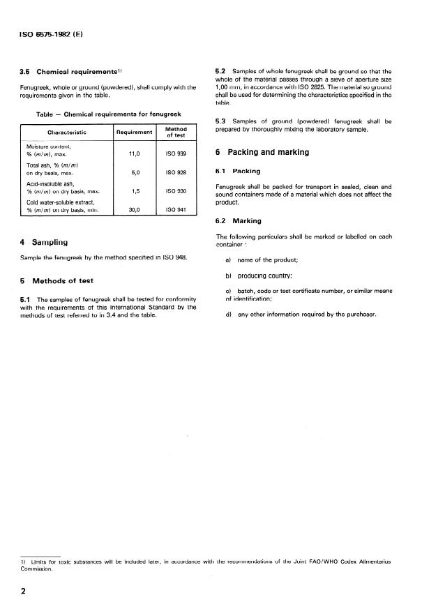 ISO 6575:1982 - Fenugreek, whole or ground (powdered) -- Specification
