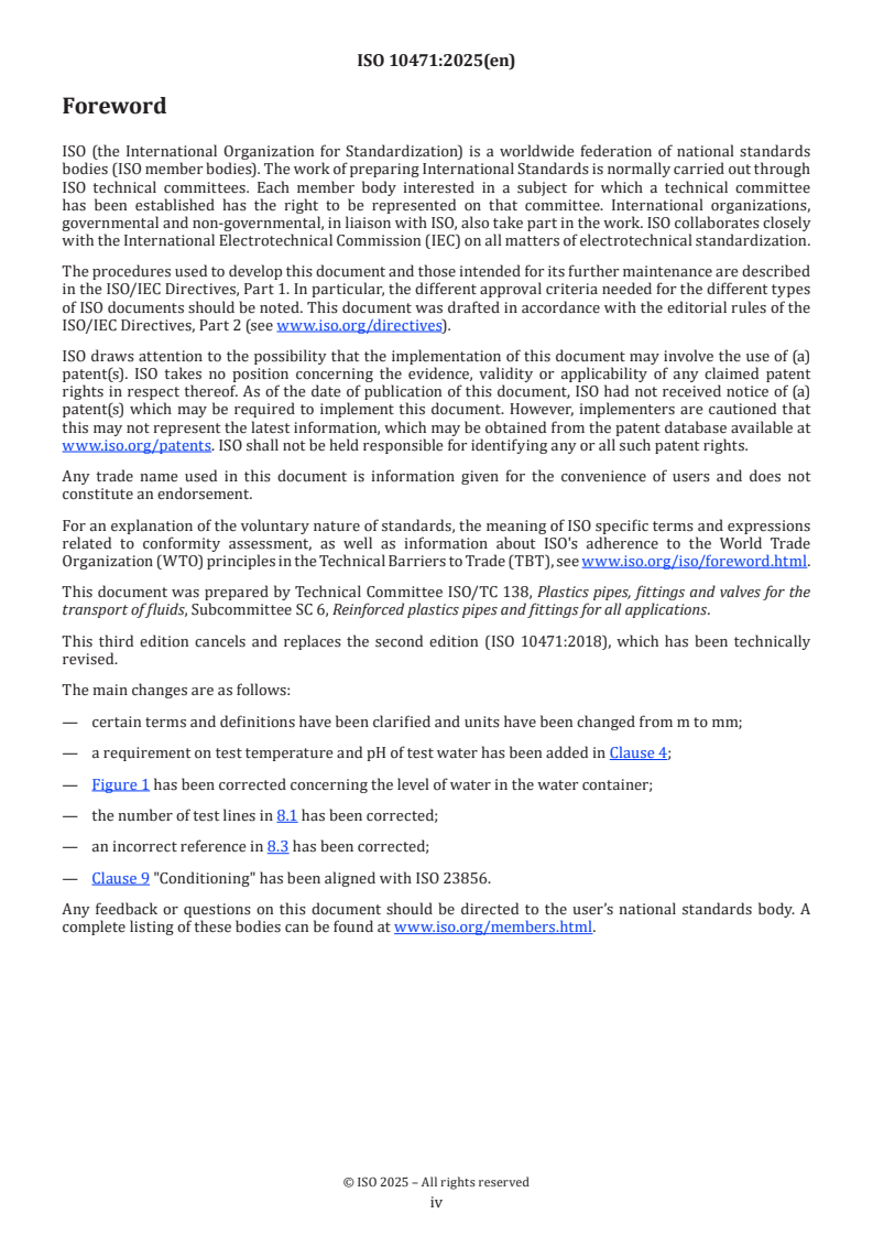 Keywords: ISO 10471:2025, GRP pipes, glass‑reinforced thermosetting plastics, long‑term bending strain, ring deflection, wet conditions, test method, extrapolation, ISO 10928.