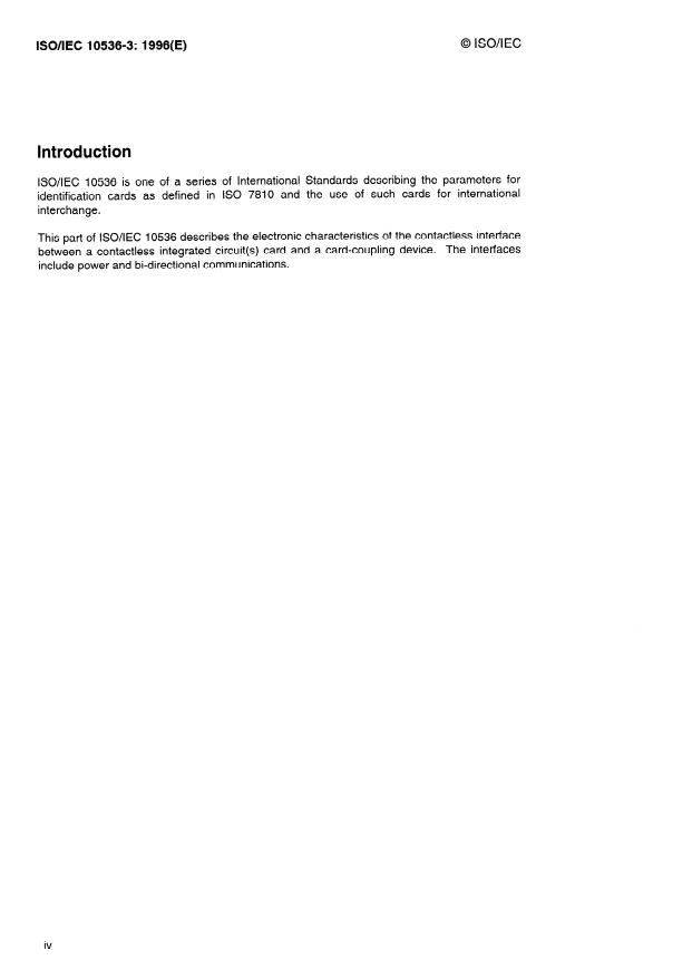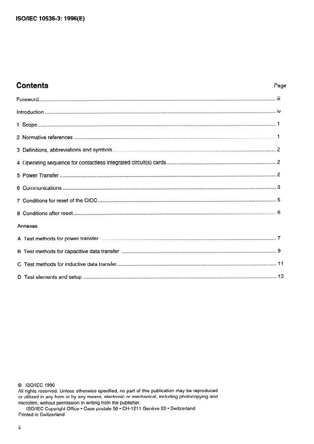 Keywords: ISO/IEC 10536-3, contactless integrated circuit cards, electronic signals, reset procedures, ID-1 card, power transfer, inductive data transfer, capacitive data transfer, ATR, CCD, CICC, phase shift keying, NRZ.