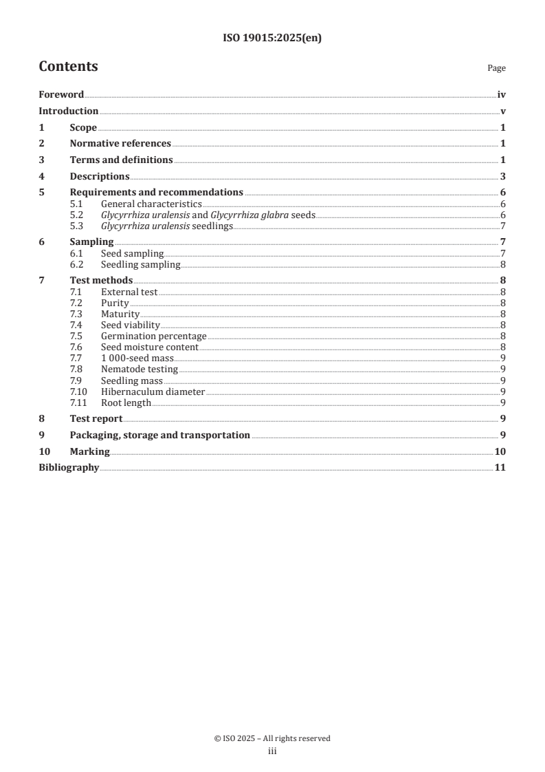 Keywords: ISO 19015, Glycyrrhiza uralensis, Glycyrrhiza glabra, liquorice seed standard, traditional Chinese medicine seeds, seed testing, seedling quality, germination, seed moisture, 1 000‑seed mass.