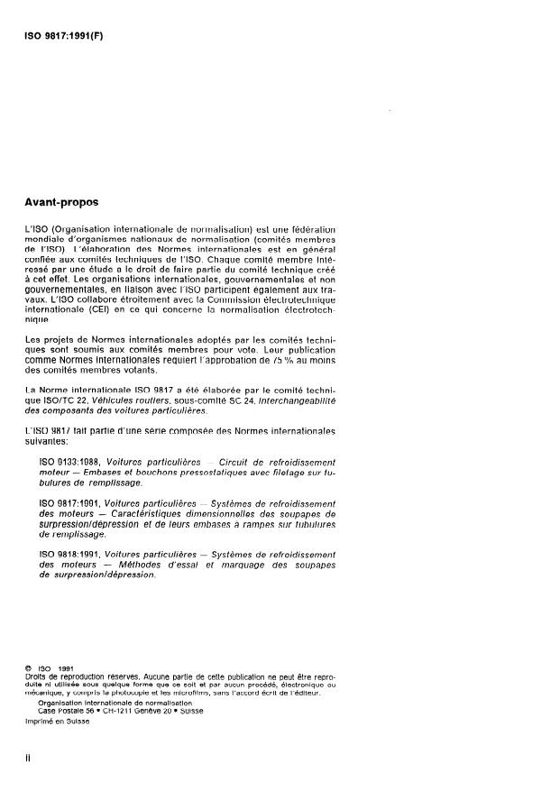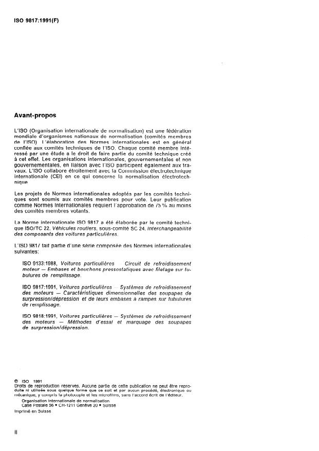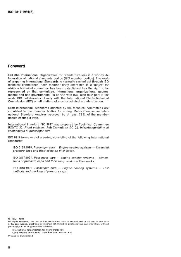 Keywords: ISO 9817, engine cooling systems, passenger cars, pressure caps, filler necks, ramp seats, dimensional standard, intercahangeability, radiator filler caps, automotive standards, cooling system components