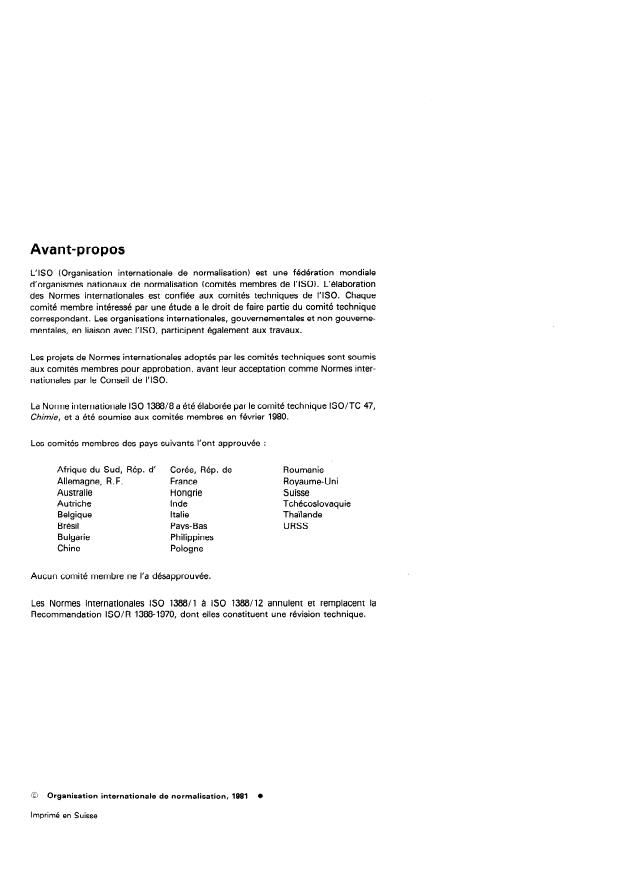 La Norme internationale ISO 1388/8 a été élaborée par le comité technique ISO/TC 47,