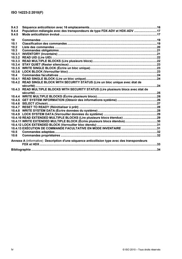 - Command taxonomy and command list, covering mandatory commands (e.g., INVENTORY, READ UID, READ/WRITE block commands, STAY QUIET, LOCK BLOCK) and optional/extended commands