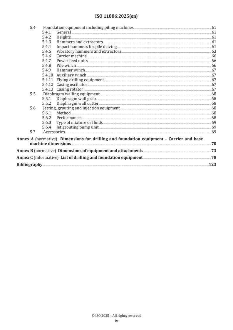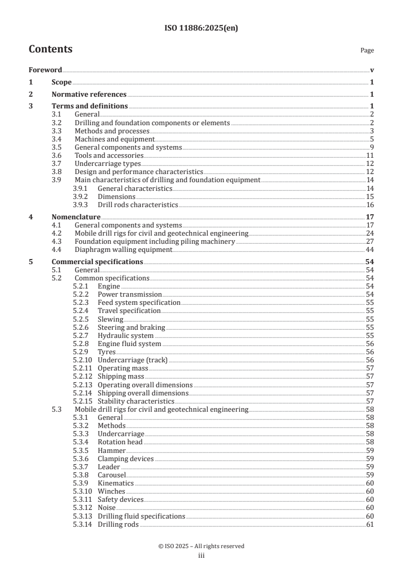 Keywords: ISO 11886:2025, drilling and foundation machinery, commercial specifications, mobile drill rigs, piling machines, diaphragm walling, jet grouting, geotechnical engineering.