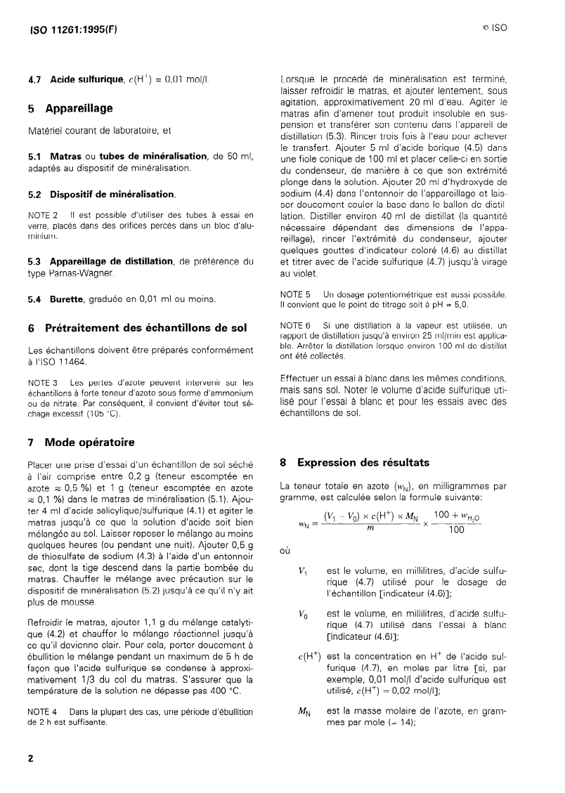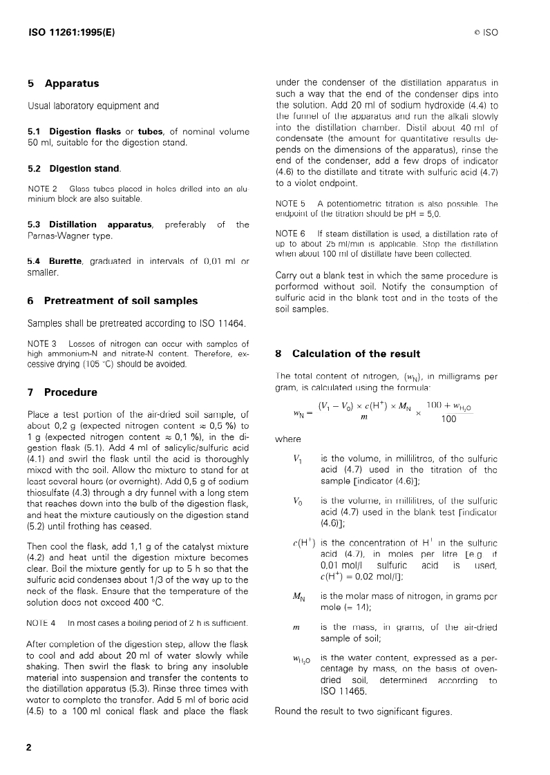 ISO 11261:1995 - Soil quality — Determination of total nitrogen — Modified Kjeldahl method Released:3/9/1995