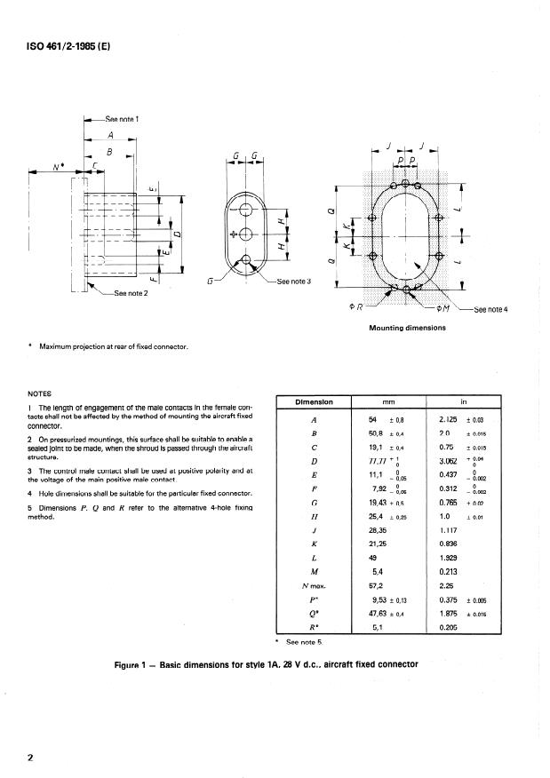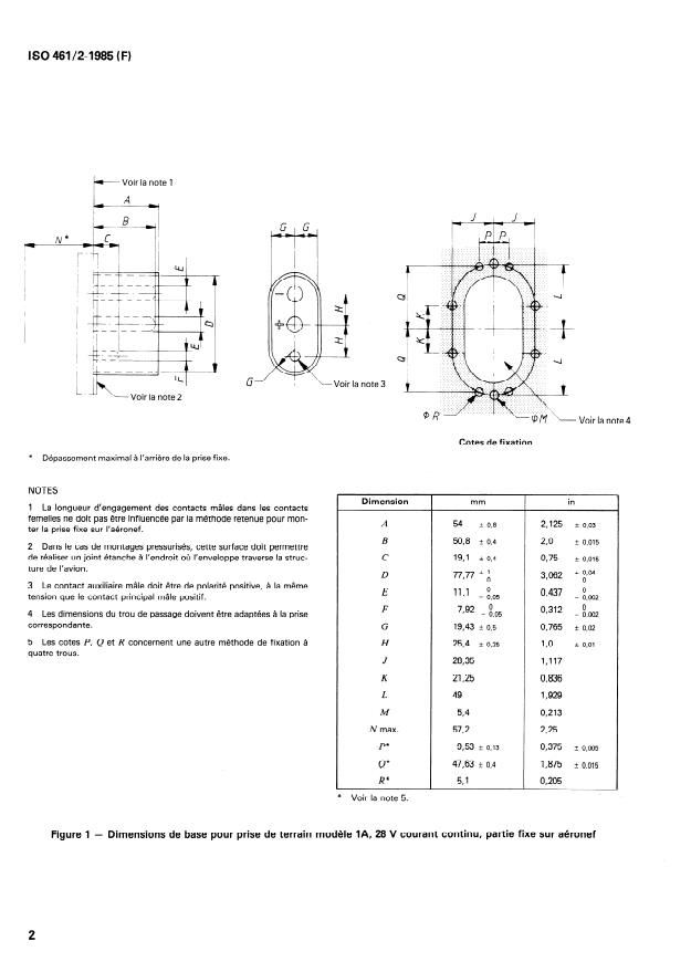Keywords: ISO 461-2:1985, aircraft connectors, ground electrical supplies, connector dimensions, 28 V DC, 112 V DC, 200 V AC, 400 Hz, aircraft fixed connector, ground supply free connector, mounting dimensions, electrical connector standards.