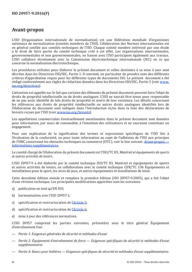 Cette deuxième édition annule et remplace la première édition (ISO 20957-9:2005), qui a fait l’objet